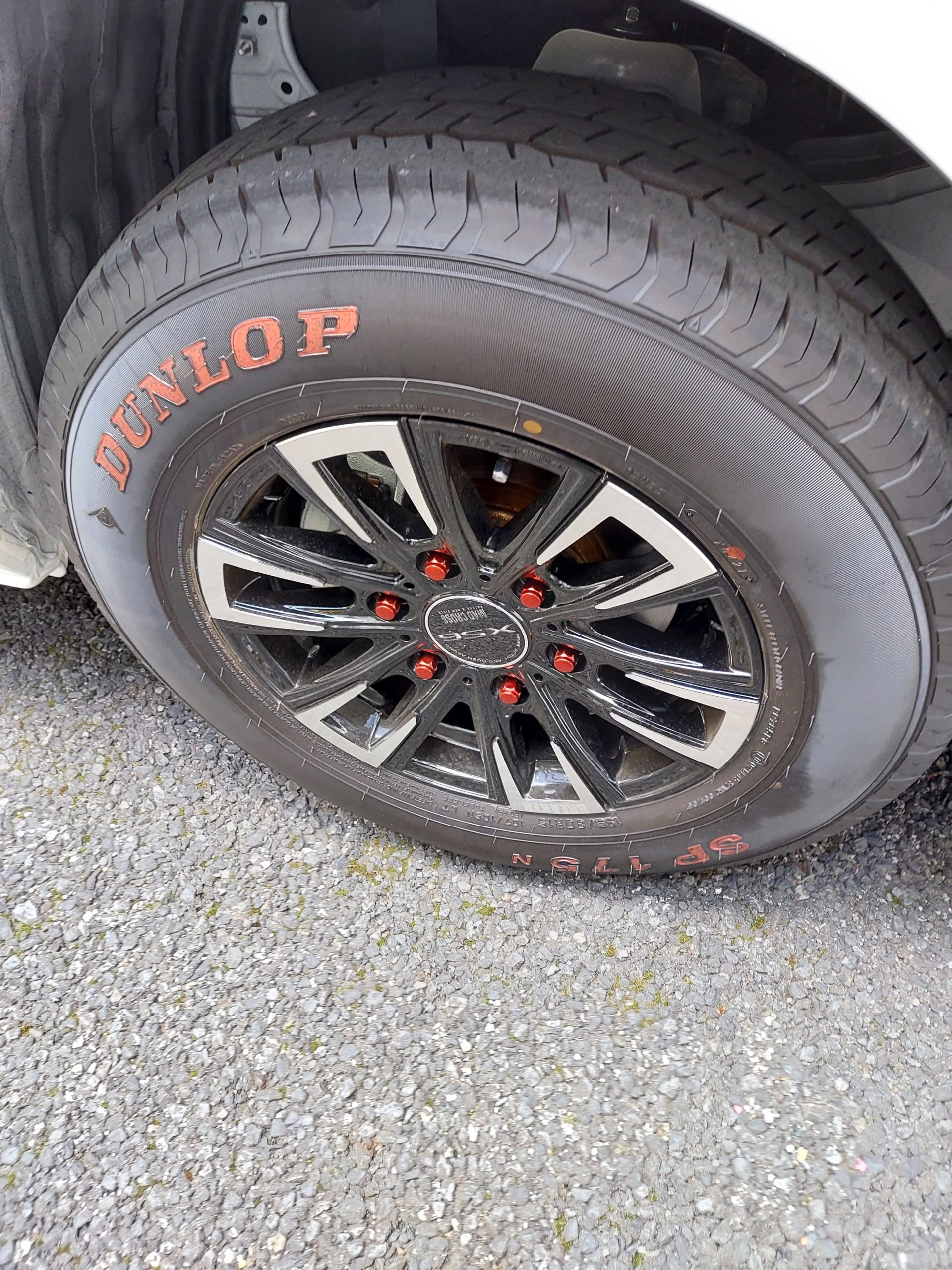 越谷市、型枠大工株式会社真尚です。休み3日目。今日はタイヤをイジってみました。遠くから見ると中々綺麗に。近くで見ると残念な感じ。