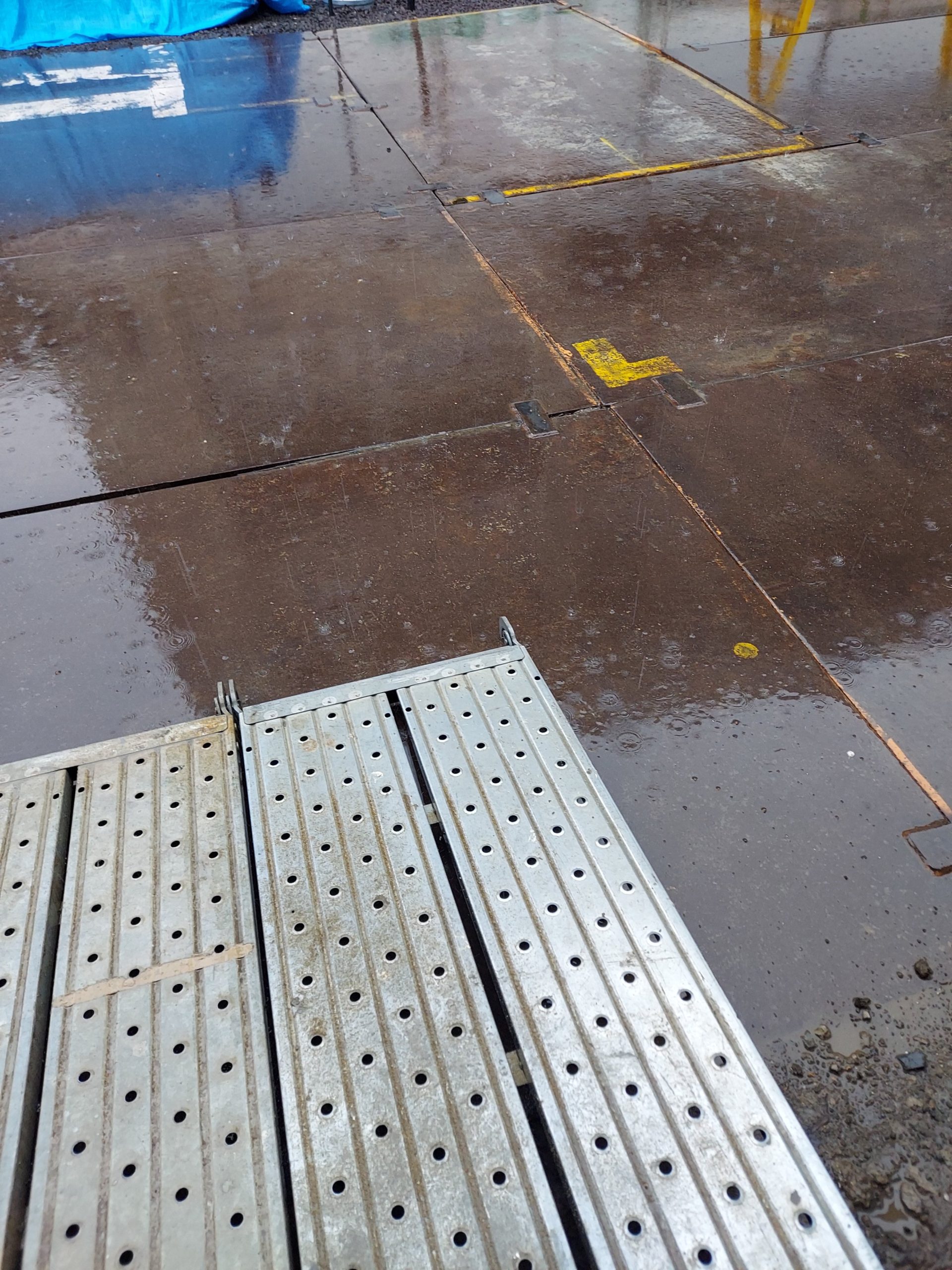 越谷市、型枠大工株式会社真尚です。今日から外部建込みなのにこの雨…。お昼休憩にまた大雨。今日は早上がりかなぁ。
