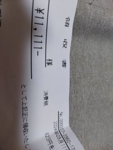 越谷市、型枠大工株式会社真尚です。9月11日、買い物に行ったらなんと11111円。