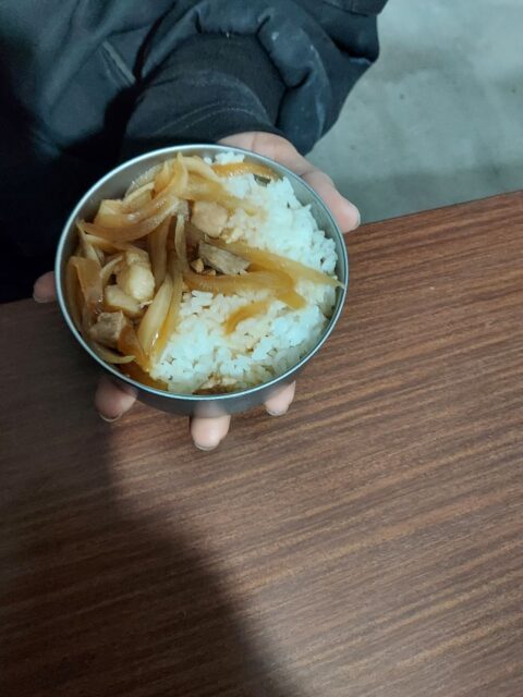 越谷市、型枠大工株式会社真尚です。朝起きたら雪が積もってる。通勤は電車と車班に分かれて出発。実習生の朝ごはん。